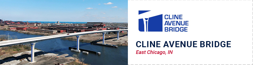 Cline Avenue Bridge reinforces its position as the solution to area congestion. With an abundance of construction on surrounding routes and roadwork underway on I-90 between mile markers 3.4 to 4.6 from October 3 through December 6, drivers can rely on Cline Avenue Bridge as their timesaving route between Northwest Indiana and Chicago.