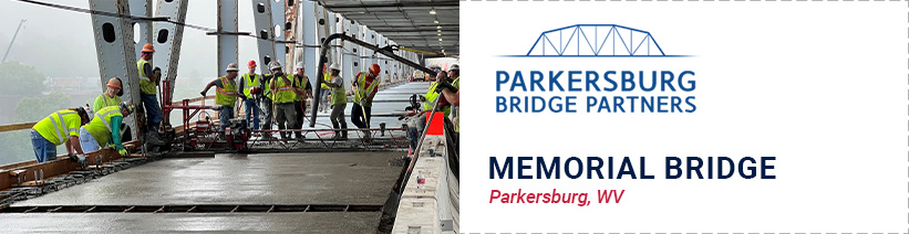A milestone was recently achieved when a notable portion of cast-in-place concrete decking was poured in the westbound lane of the Parkersburg Memorial Bridge. Over the course of three nights, the crew laid down approximately 500 yards of concrete.